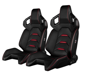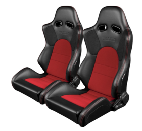 Braum Elite V2 Reclinable Seats - Black & Red Leatherette (Pair)