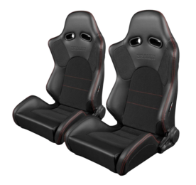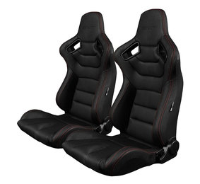 Braum Advan Reclinable Seats - Black Leatherette w/Red Stitching (Pair)