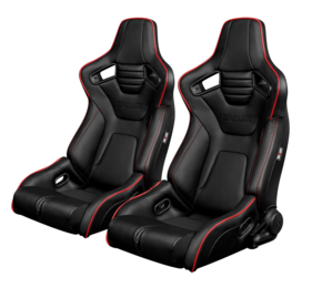 Braum Elite-R Reclinable Seats - Black Leatherette w/Red Piping (Pair)