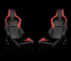 Braum Elite V2 Reclinable Seats - Black Leatherette w/Red Fabric (Pair)