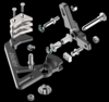 The system includes new friction material, clips, locking nuts and stainless steel bolts and pegs.