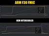 Installation of the ARM F30 335i FMIC upgrade requires no cutting, trimming or removal of the front bumper or radiator shroud. It is a direct fit which bolts up into the original stock intercooler location. The CNC connectors will connect to either the stock F30 intercooler piping or to any upgraded intercooler piping that fits the stock intercooler.
