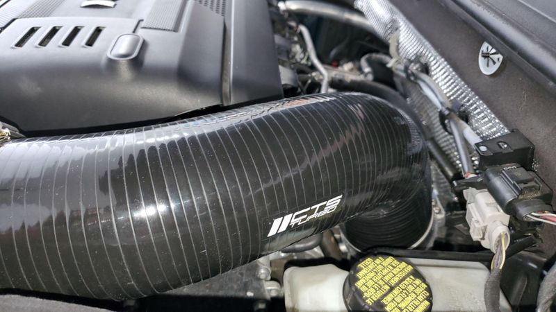 This is one of the least expensive in the market but I decided to give it a try with the new cast aluminum CTS Turbo inlet pipe and fitment was perfect with the stock airbox, the sound is great now and the turbo definitely breaths better.