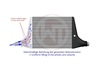 The Competition Intercooler has the following core dimensions (550mm x 445mm x 70mm = 17.130cm³). The high-performance intercooler core provides a 134% larger frontal area and 105% more volume than the stock-mounted intercooler.
